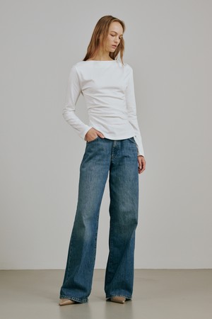 보트넥 드레이프 티셔츠 - 화이트 / Boatneck Drape T-shirts - White