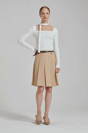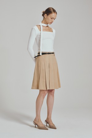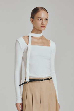 스퀘어 넥 스카프 티셔츠 - 아이보리 / Square Neck Scarf T-Shirts - Ivory