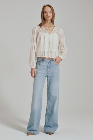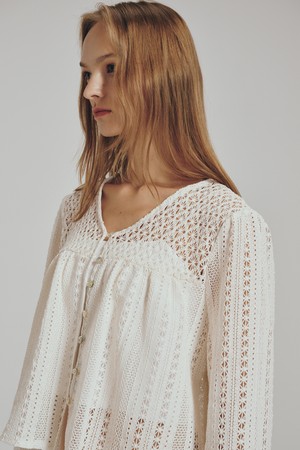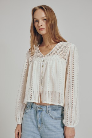 브이넥 펀칭 블라우스 - 크림 / V-neck Punching Blouse - Cream