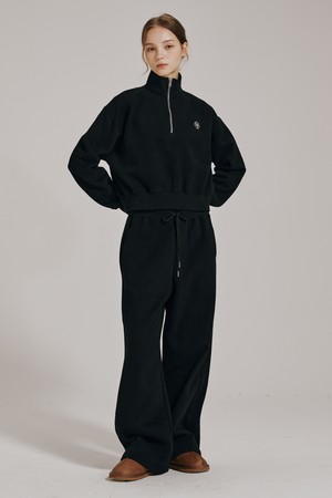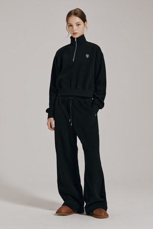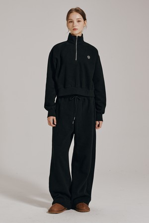 [기모] 하프집업 크롭 스웻셔츠 - 블랙 / Half Zip Up Crop Sweatshirts - Black