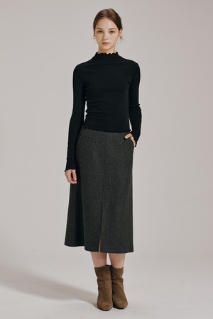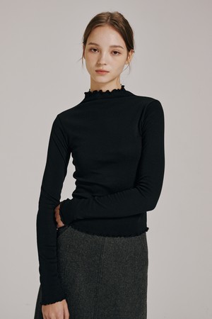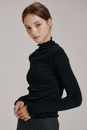 프릴 하프넥 티셔츠 - 블랙 / Frill Half-Neck T-Shirt - Black