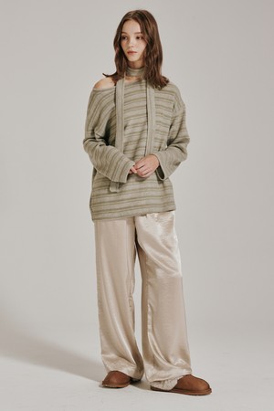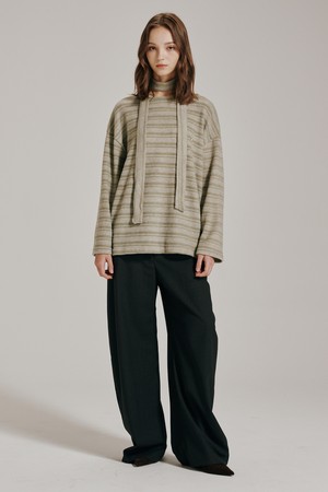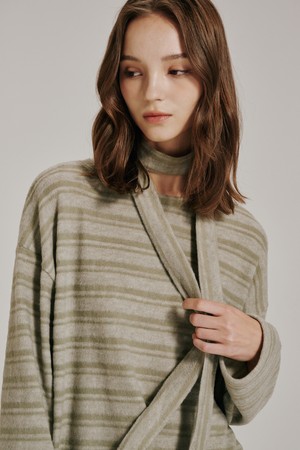 스트라이프 스카프 니트 티셔츠 - 그린 / Stripe Scarf Knit T-Shirt - Green