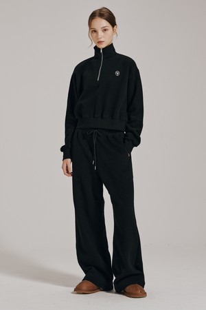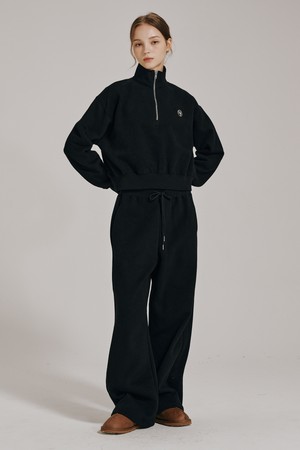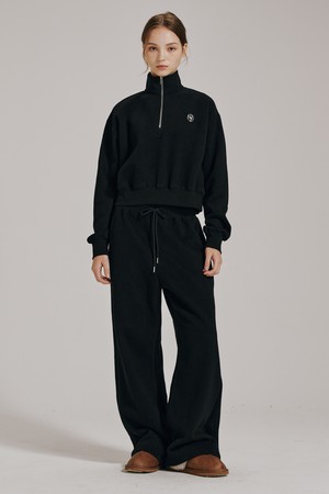 [기모] 하프집업 크롭 스웻셔츠 셋업 - 블랙 / Half Zip Up Crop Sweatshirts Set Up - Black