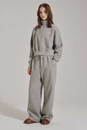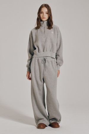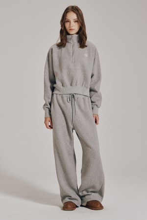 [기모] 하프집업 크롭 스웻셔츠 셋업 - 멜란지 그레이 / Half Zip Up Crop Sweatshirts Set Up - M.Gray