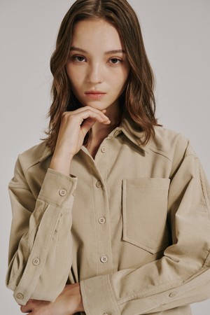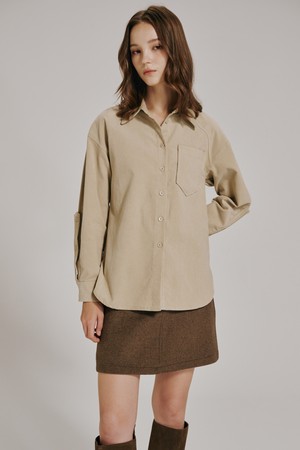 코듀로이 커브드 슬리브 블라우스 - 베이지 / Corduroy Curved Sleeve Blouse -Beige