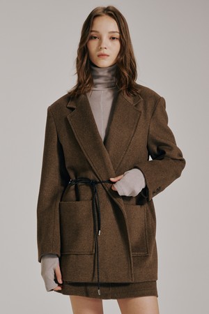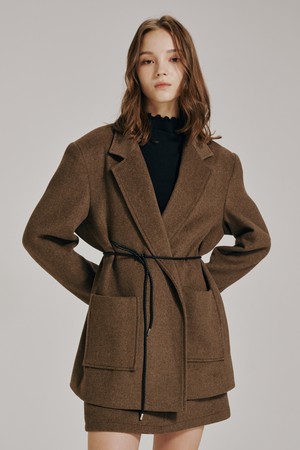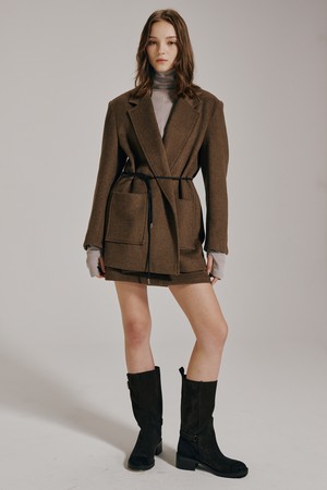 울 벨티드 자켓 셋업 - 브라운 / Wool Belted Jacket Set Up - Brown