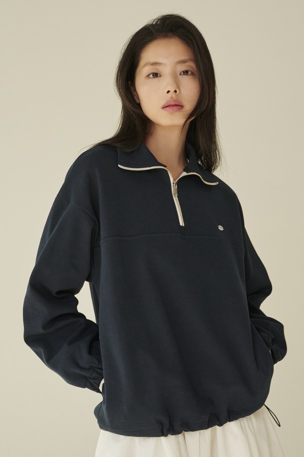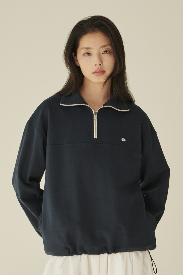 코튼 하프 집업 스웻셔츠 - 네이비/ Cotton Half-Zip Up Sweatshirt - Navy