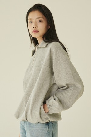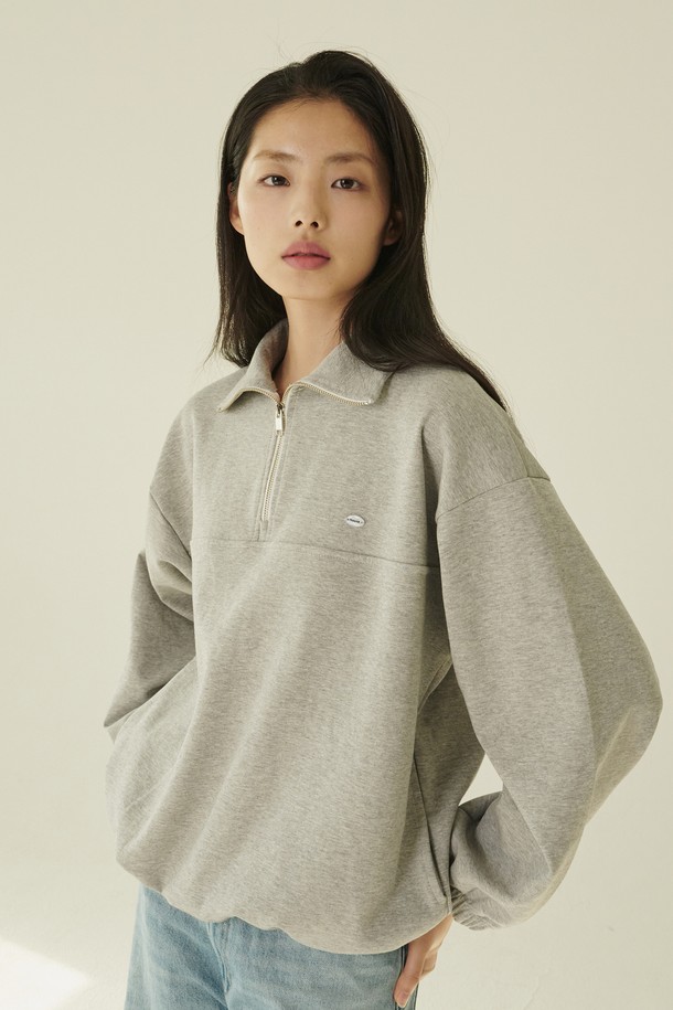 코튼 하프 집업 스웻셔츠 - 멜란지 그레이/ Cotton Half-Zip Up Sweatshirt - M.Gray