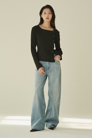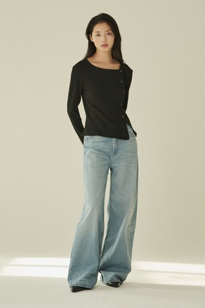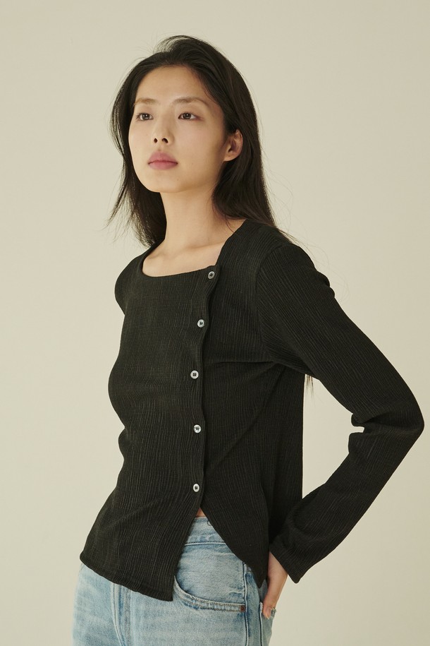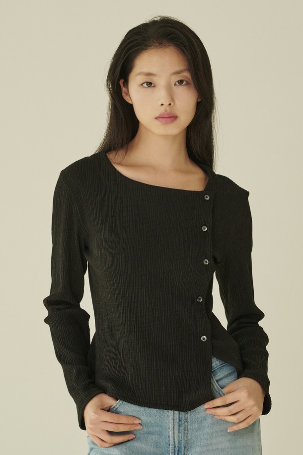 언발란스 버튼 탑 - 블랙/ Unbalanced Button Top - Black