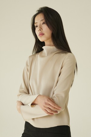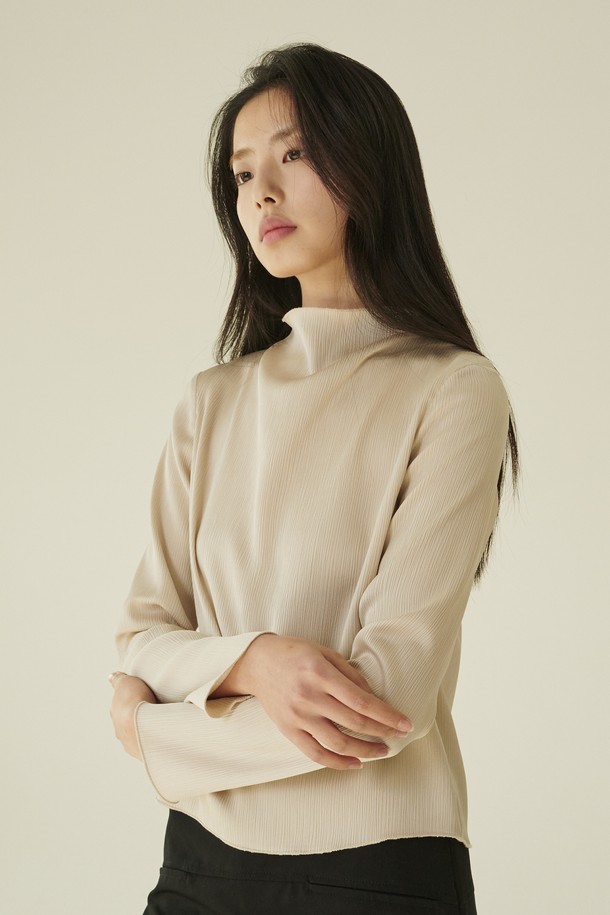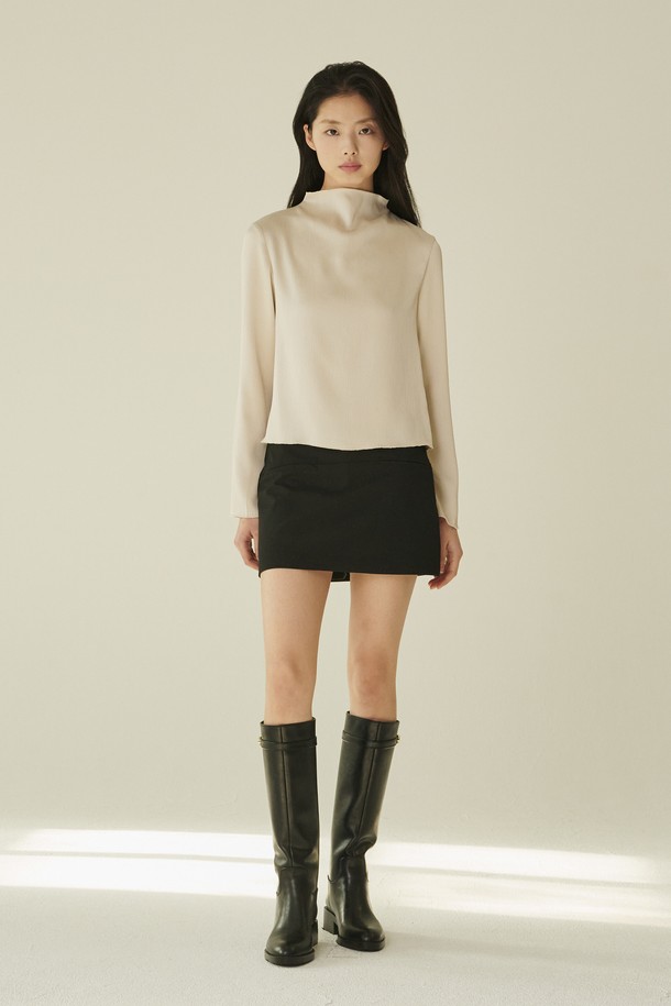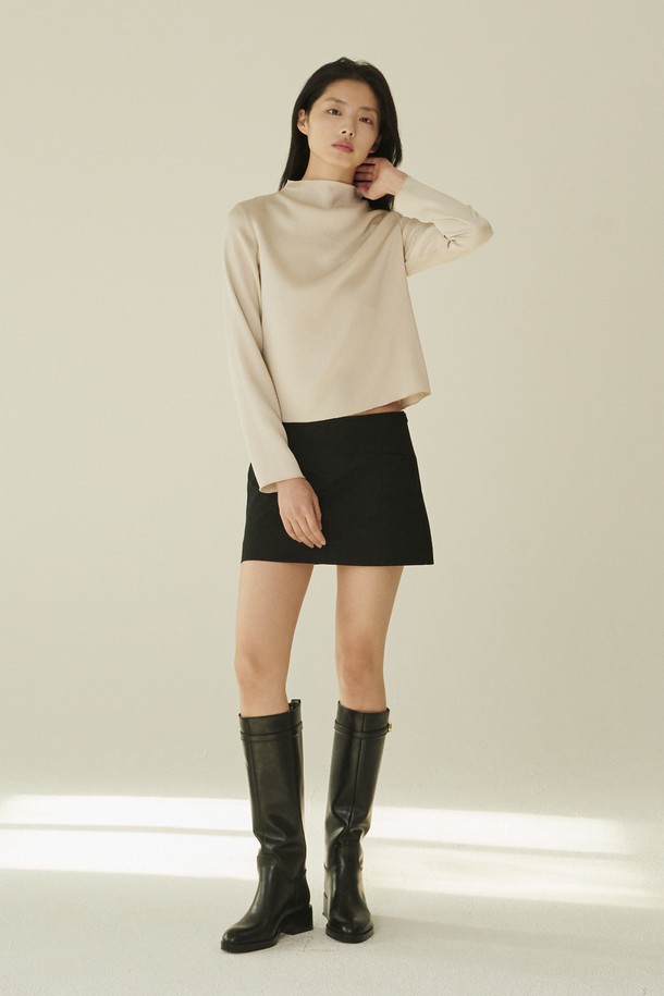 하프넥 실키 블라우스 - 베이지/ Half‑Neck Silky Blouse - Beige