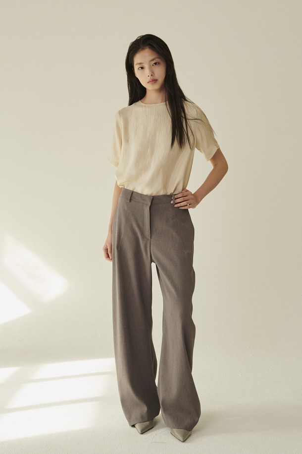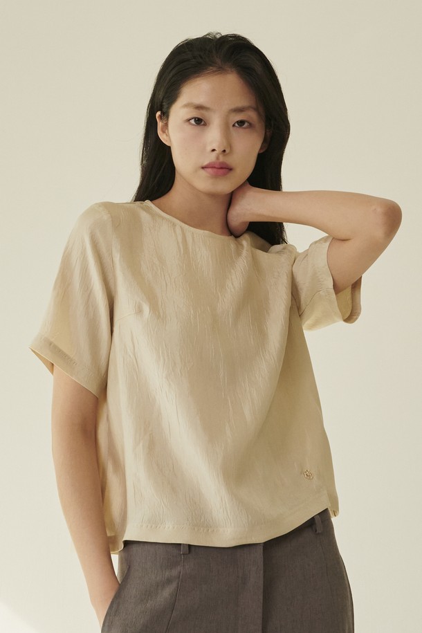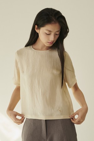 라운드넥 시어 블라우스 - 크림/ Round‑Neck Sheer Blouse - Cream