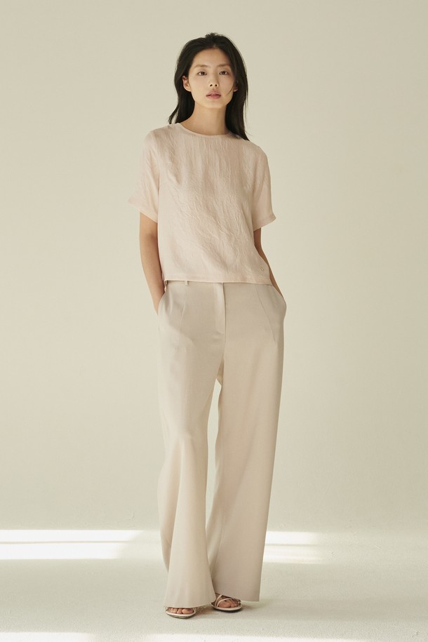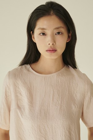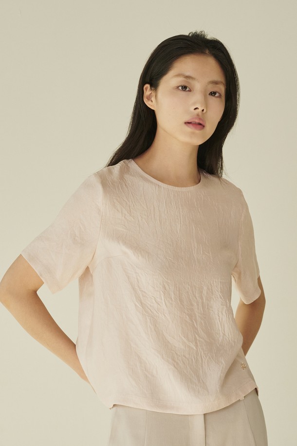 라운드넥 시어 블라우스 - 핑크/ Round‑Neck Sheer Blouse - Pink