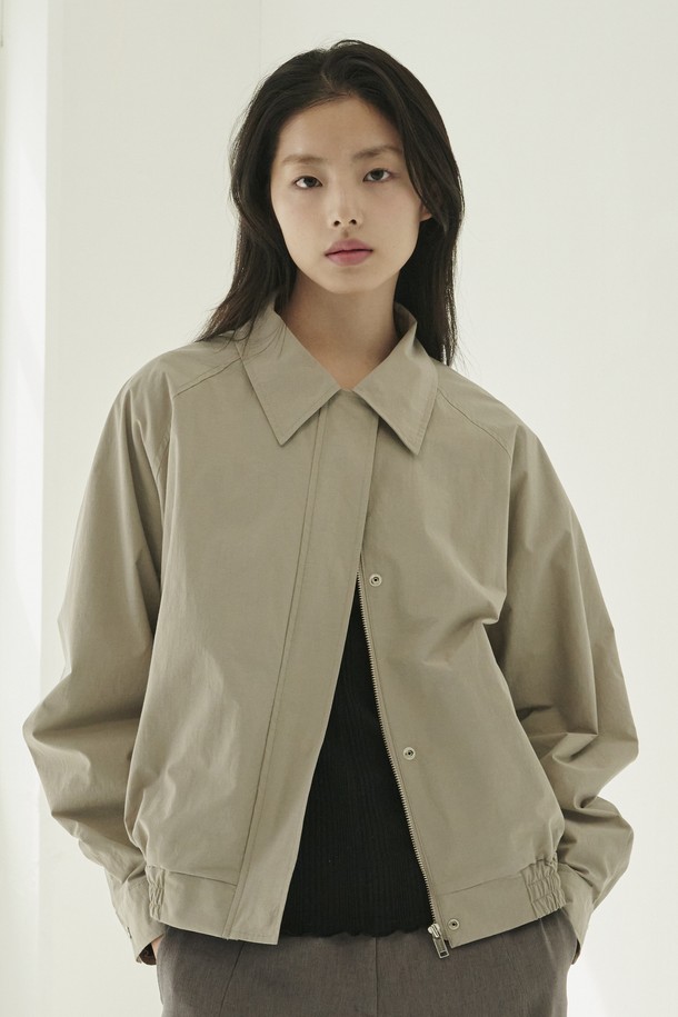 코튼 블랜드 봄버 자켓 - 그레이/ Cotton Blend Bomber Jacket - Gray