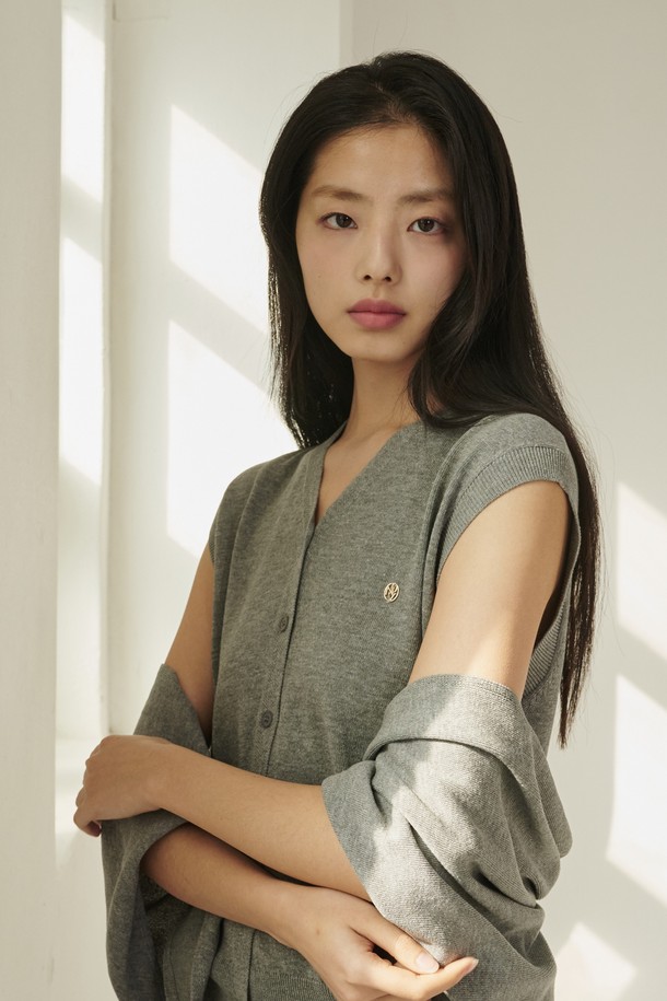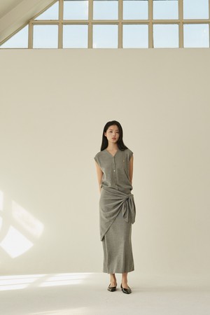 [세트] 린넨 슬리브리스 가디건 + 스커트 + 숄 - 멜란지 그레이/ [Set] Linen Sleeveless Cardigan + Skirt + Shawl - M.Gray