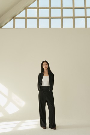 스트레치 져지 집업 셋업 - 블랙/ Stretch Jersey Zip‑Up Set - Black