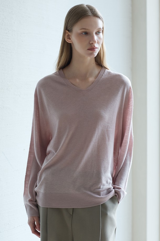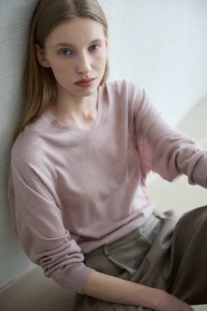 Wholegarment Wool V-Neck Knit_Pink