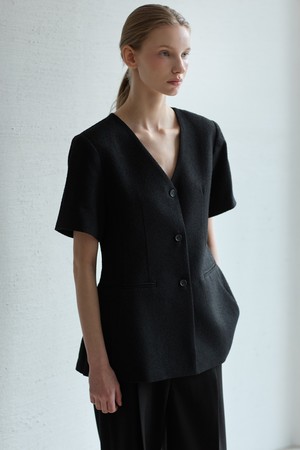 Line tweed Jacket_Black