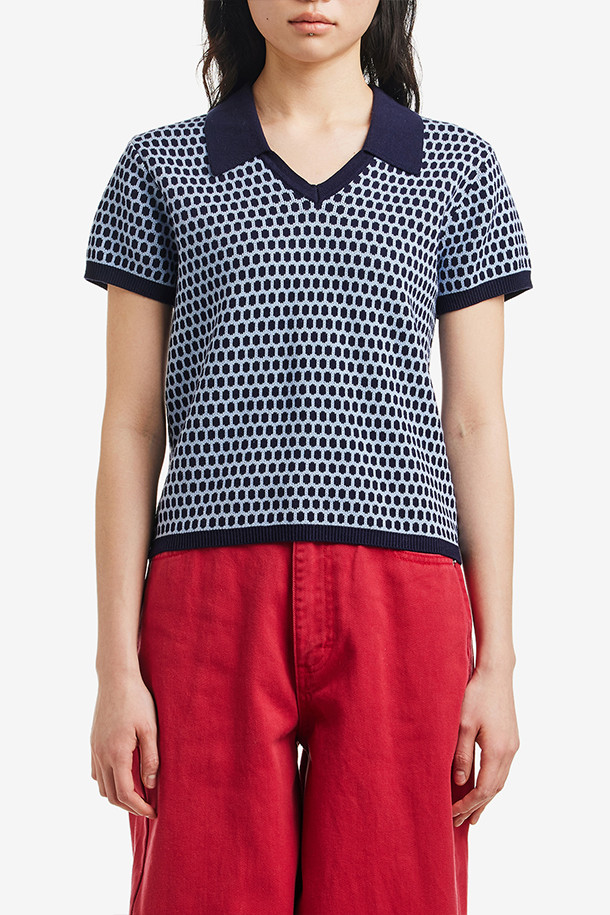 [오베이] OLGA POLO SWEATER 올가 폴로 스웨터 - EVENING BLUE MULTI