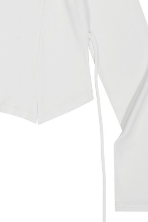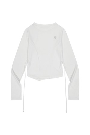 셔링 크롭 롱 슬리브 티셔츠-화이트