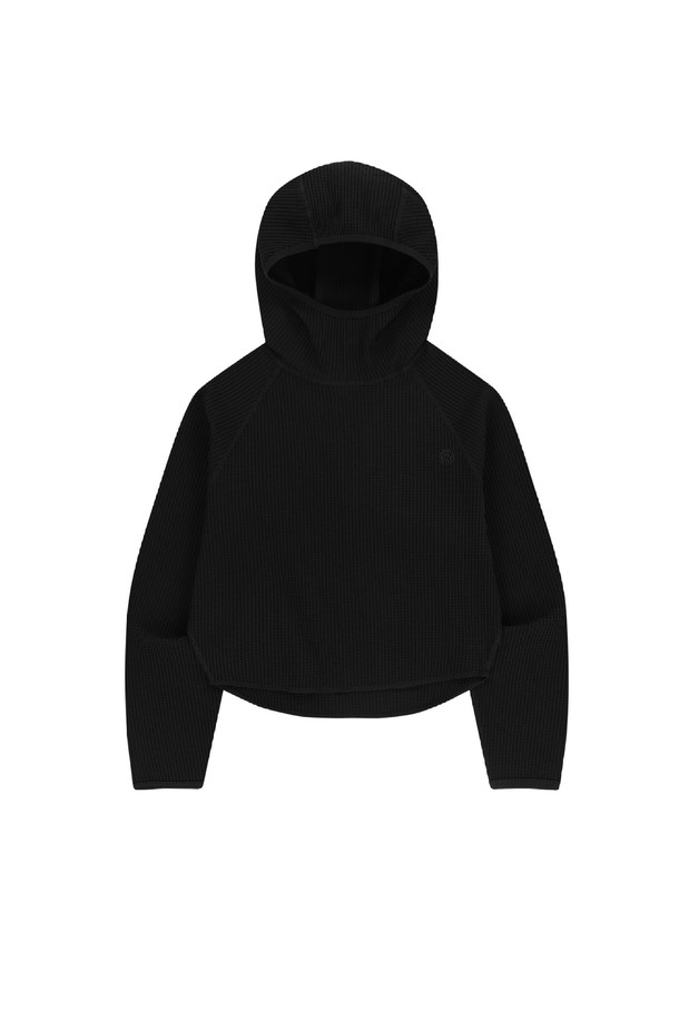 와플 우먼스 트레일 크롭 래글런 후디-블랙