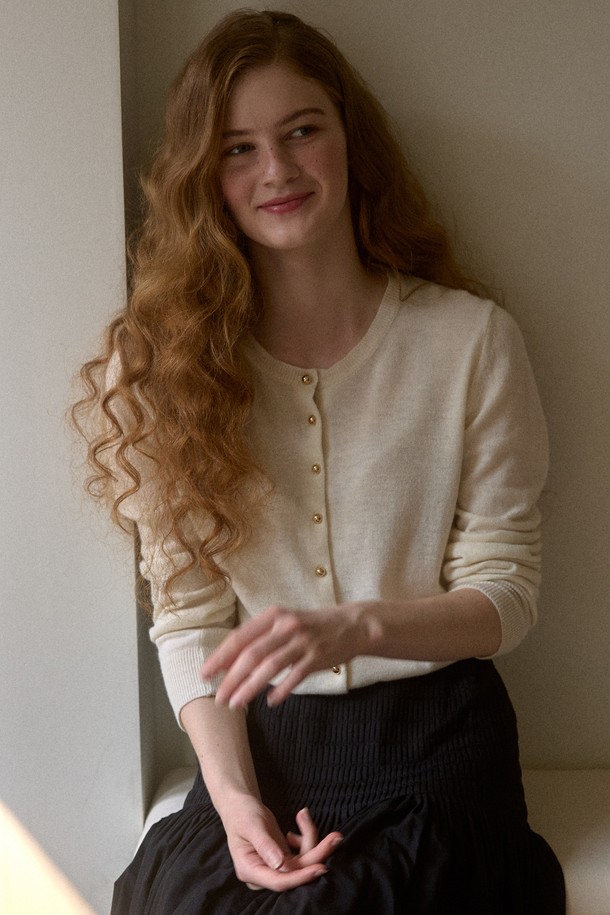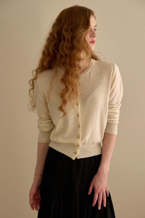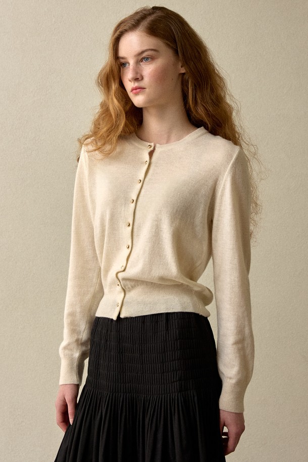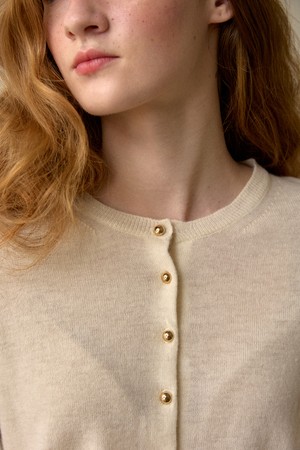 Gold Button Cash Cardigan Ivory