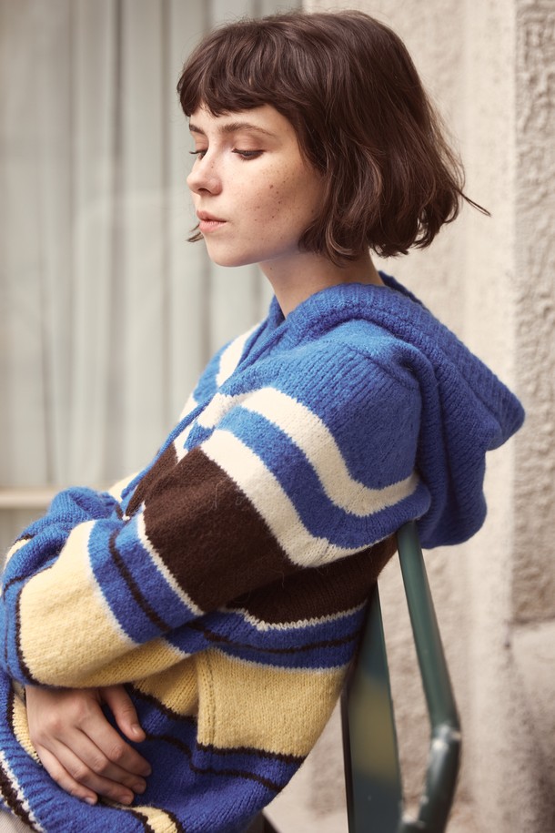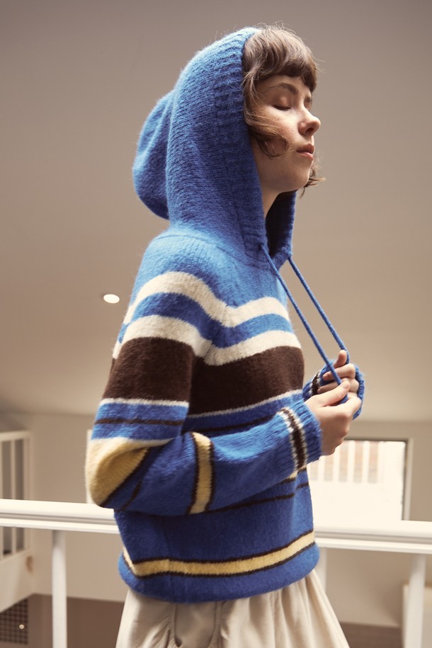 Retro Hood Knit Blue