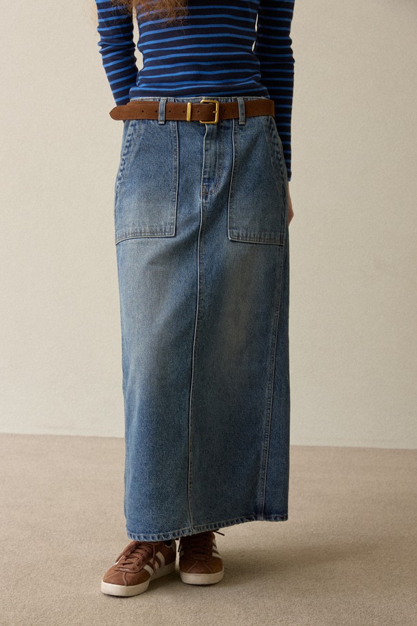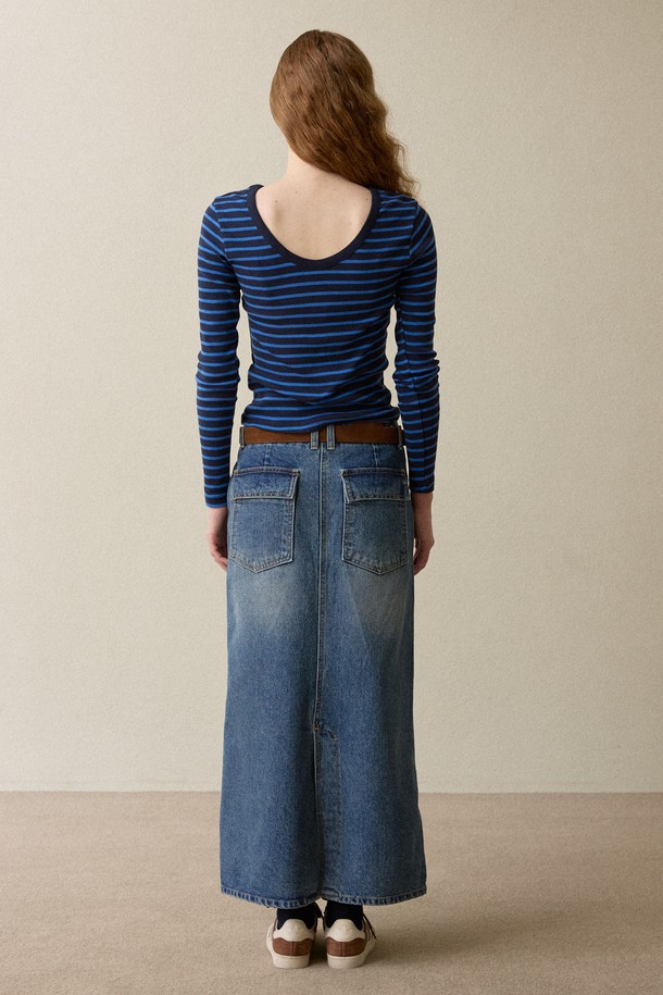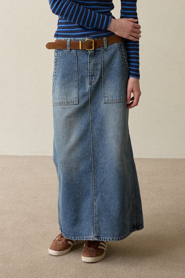 H line Poket Denim Skirt Navy
