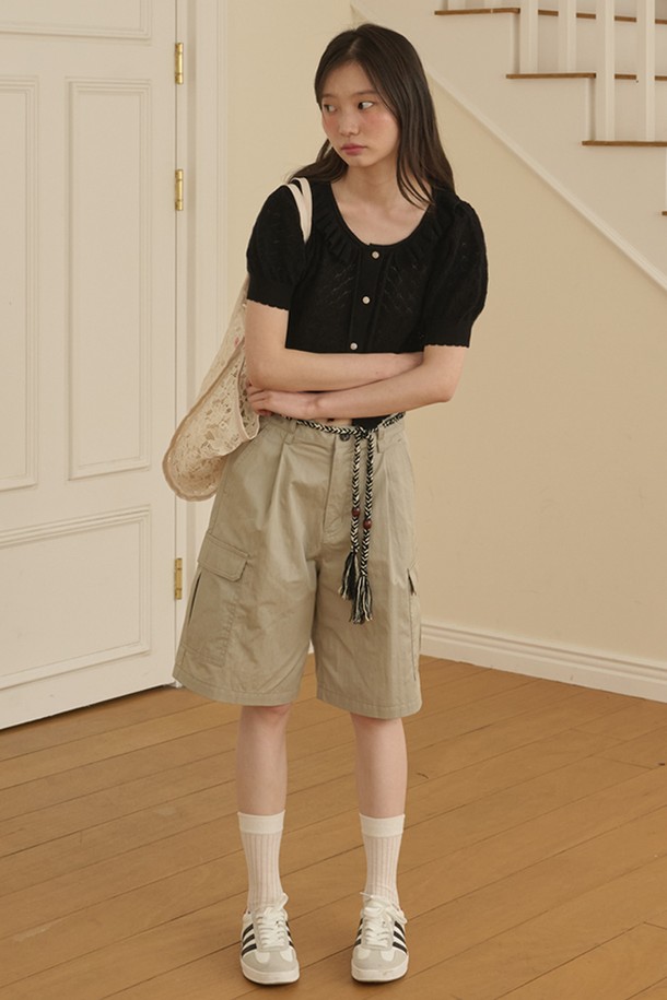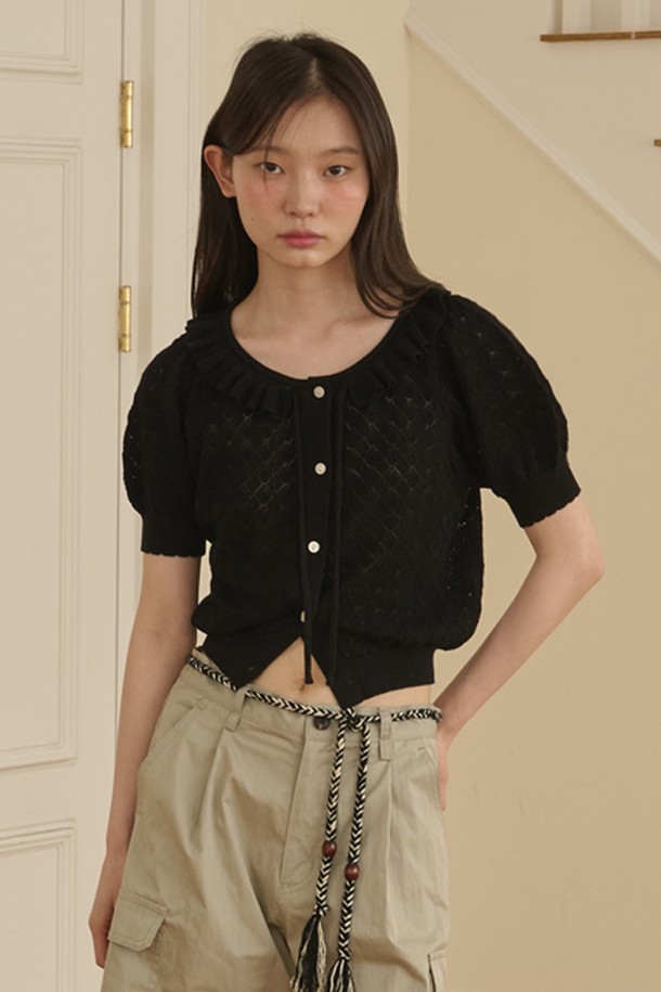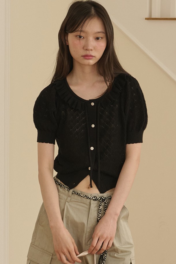 Ruffle Collar Cropped Knit Cardigan_Black