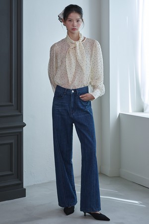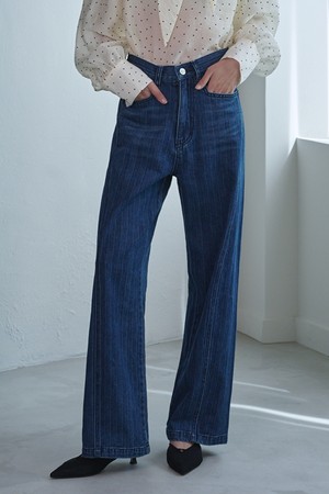 Low-rise Striped Denim Pants_Deep blue