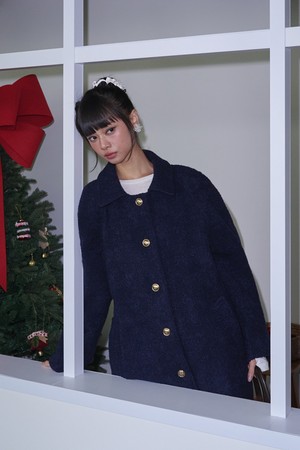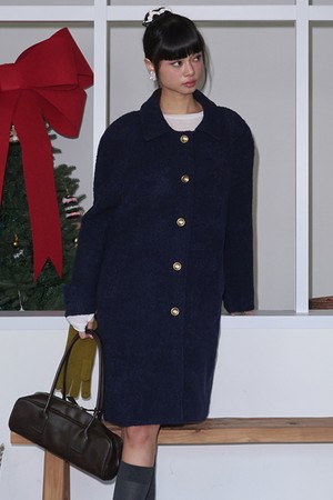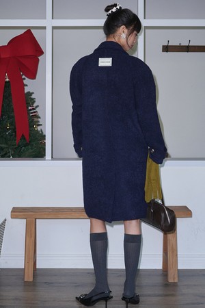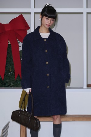 Boucle Raglan Single Wool Long Coat_Navy