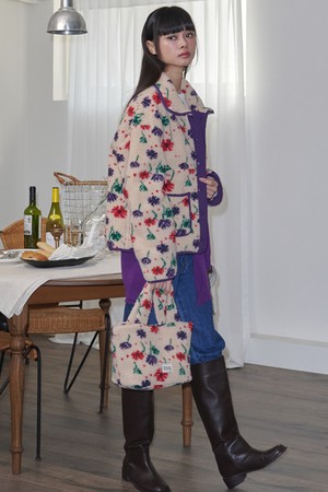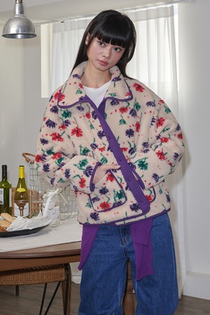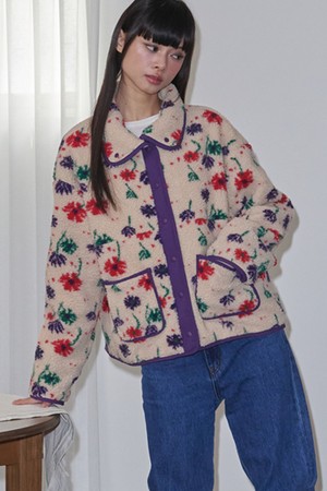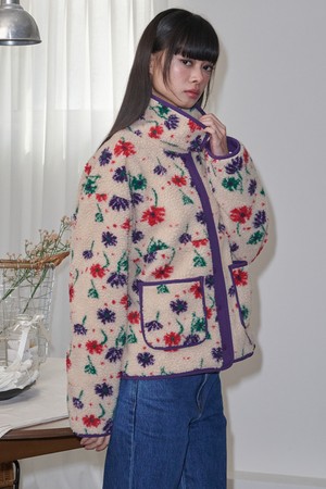 Flower Pattern Fleece Jacket_Beige