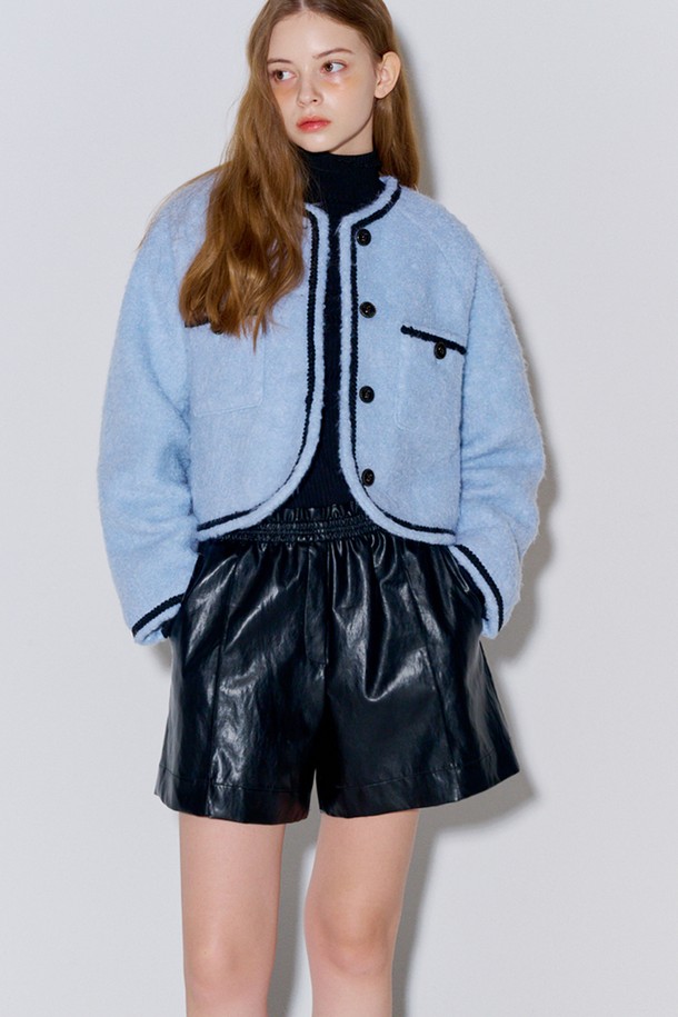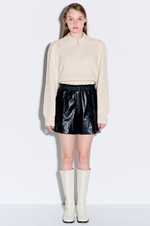 [리퍼브] Eco leather banding short pants_Black