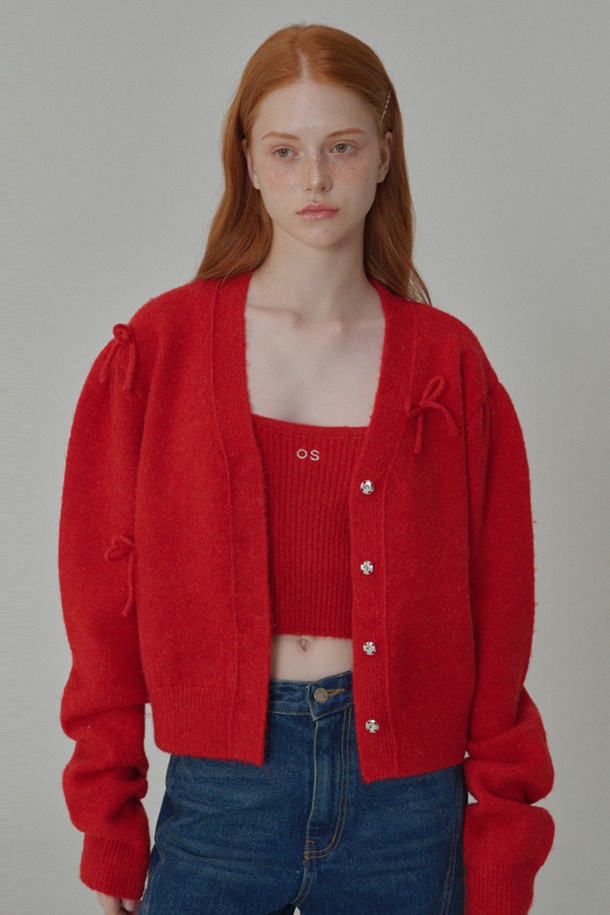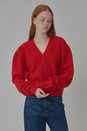 [리퍼브] Mohair Ribbon Pointed Cardigan Red