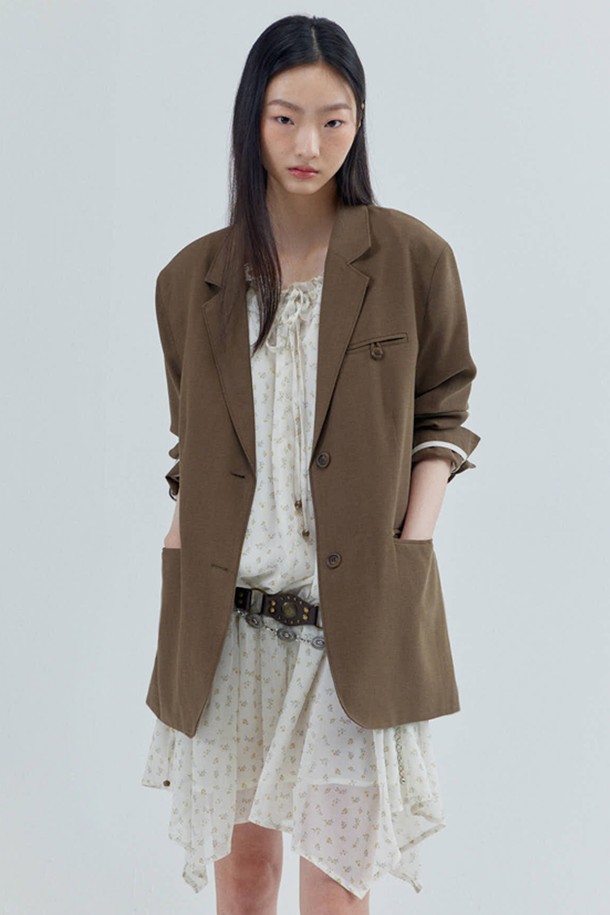 [리퍼브] Over-fit Linen Back-opened Jacket_Brown