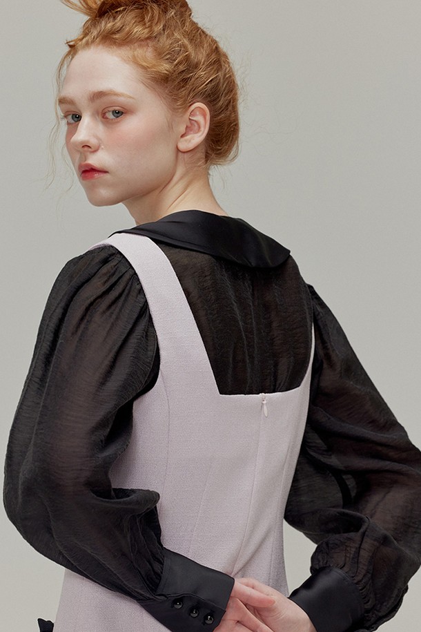 [리퍼브] Round collar see-through blouse_Black