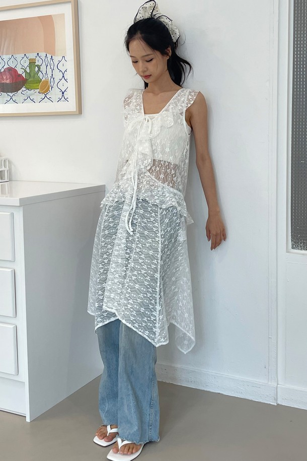 [리퍼브] Ruffle Lace Layered Dress_White