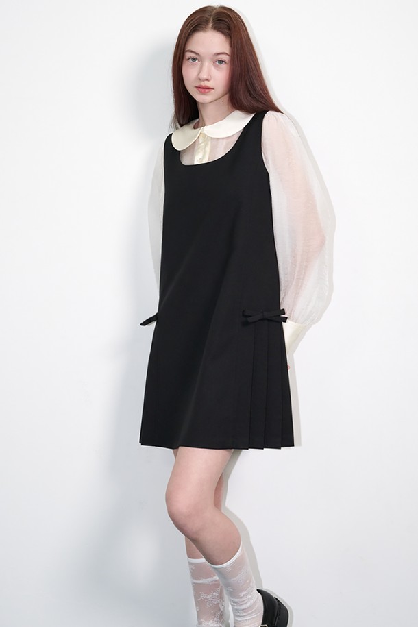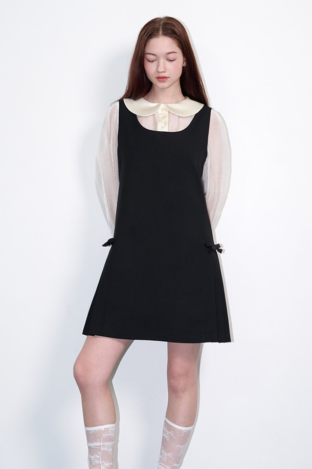 Ribbon bustier pleated mini dress Black