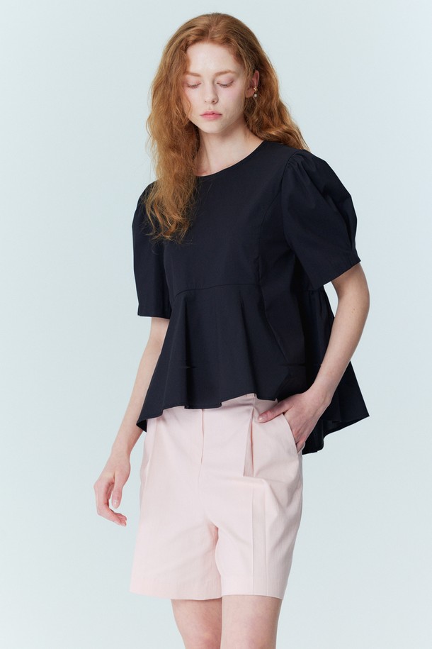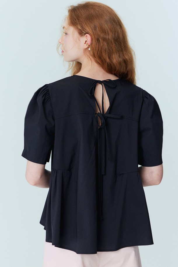 [리퍼브] Back Ribbon Detail Peplum Blouse_Black