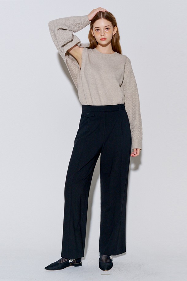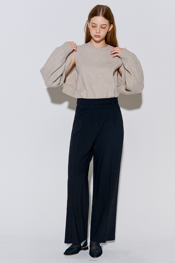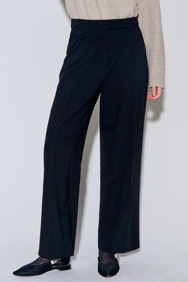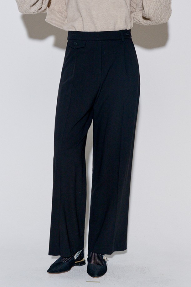 [리퍼브] Button Point Wool Pintuck Wide Slacks Black