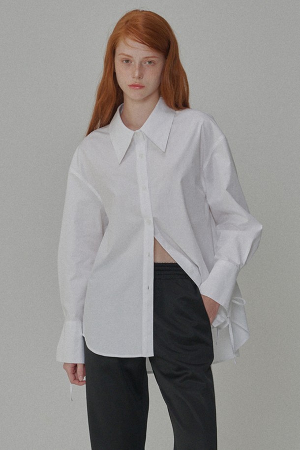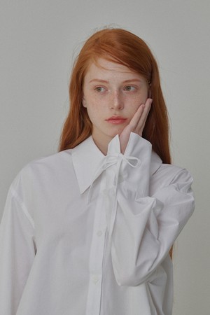 [리퍼브] Ribbon Detailed Over-fit Cotton Shirt_White