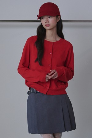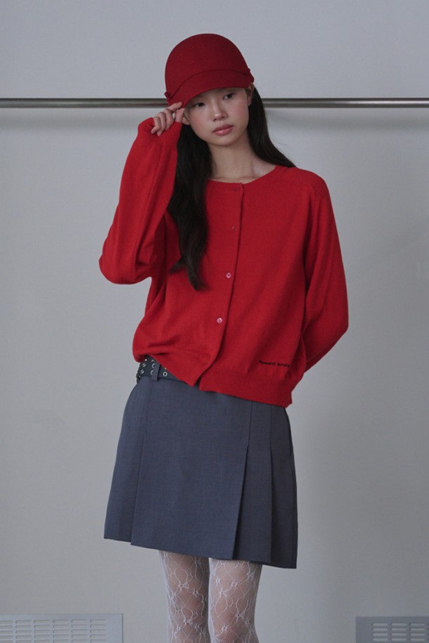 [리퍼브] Round Neck Merino Wool Cardigan_Red