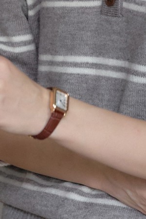 Square Gold Classic Leather Watch - Brown