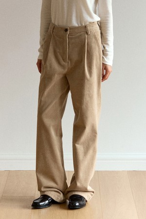 Corduroy One-Tuck Relaxed Pants - Beige