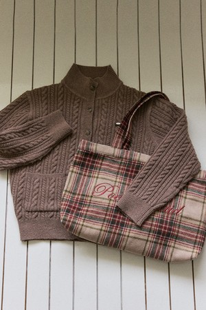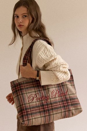 Poetry Embroidery Wool Check Bag - Beige
