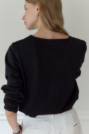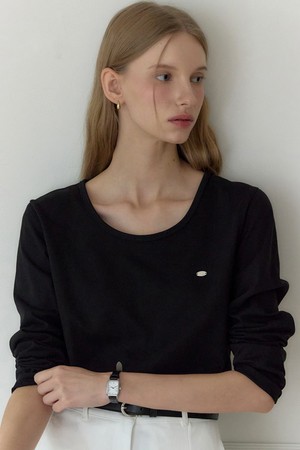 Logo Silky U-neck Sleeve T-shirt - Black