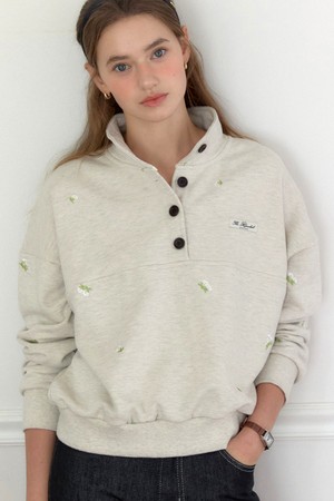 Margaret Embroidery Button-down Sweatshirt - Oatmeal