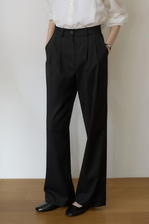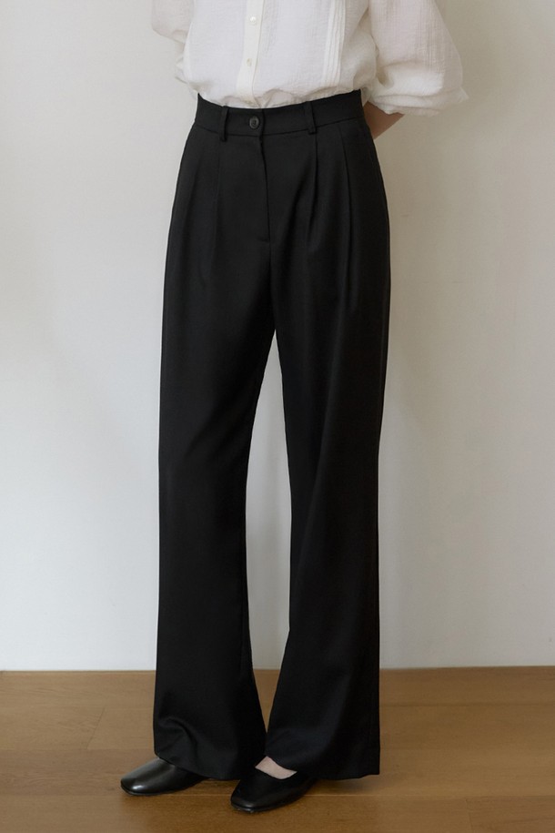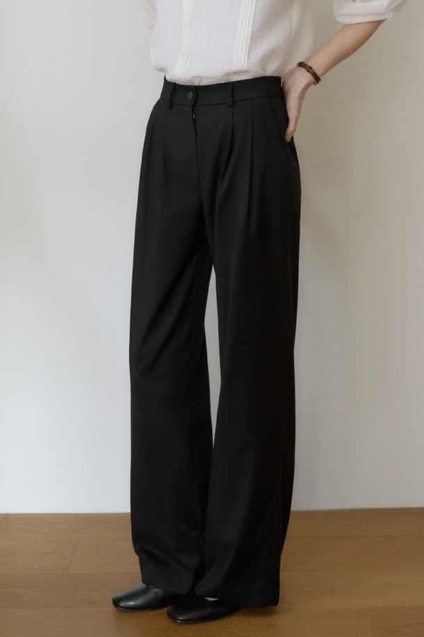 SPPT09 에센셜 투턱 와이드 슬랙스 - Black