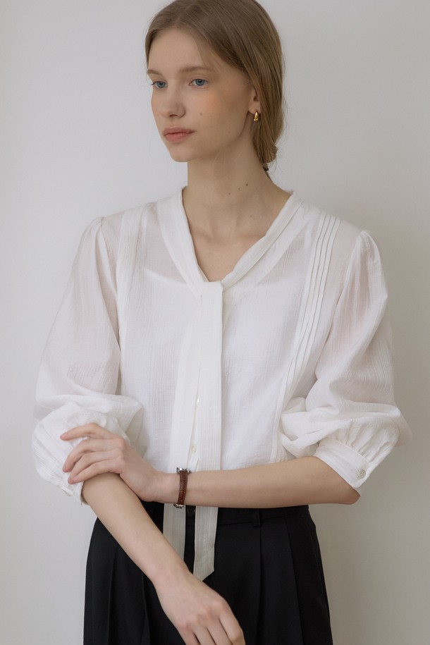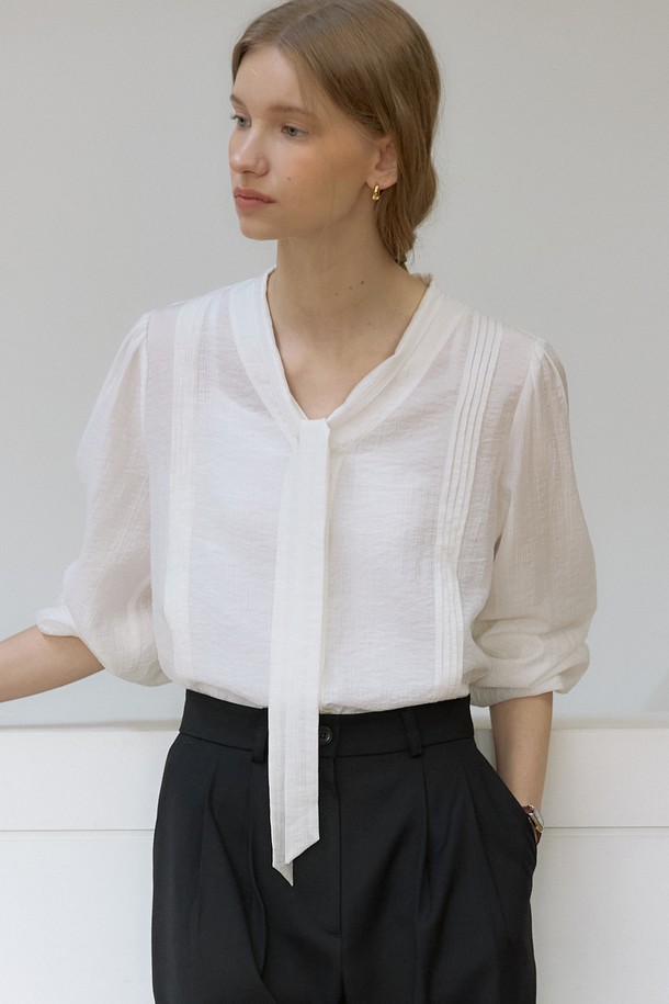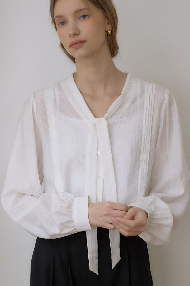 텐셀 스카프 타이 핀턱 블라우스 - Ivory
