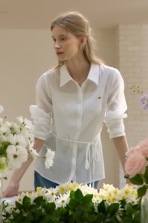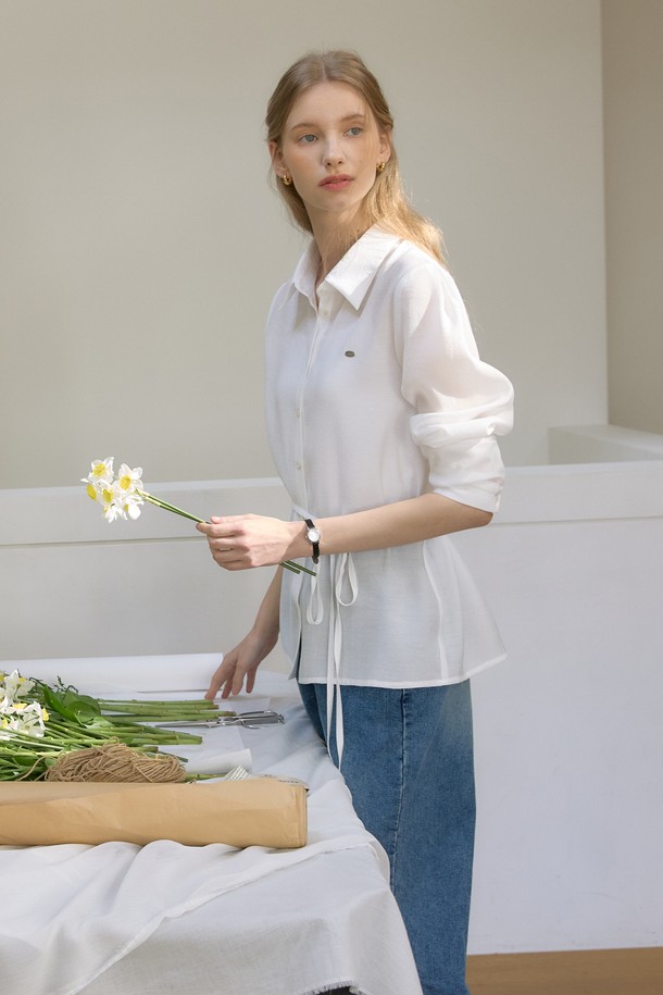 모달 시어 스트링 블라우스 - Ivory