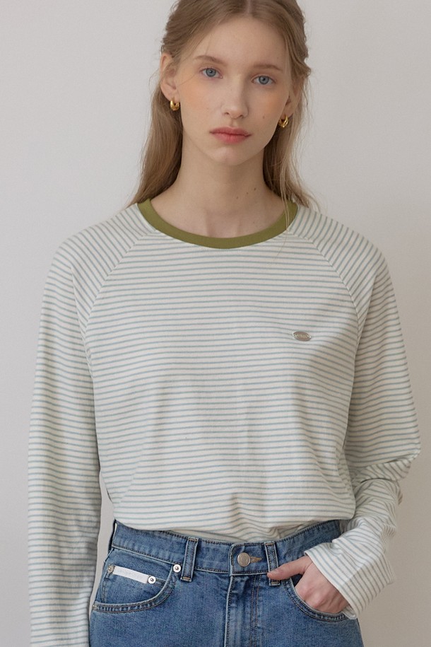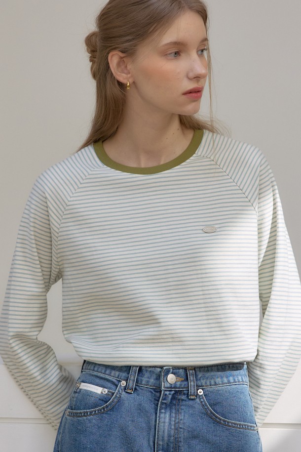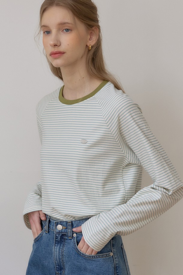 스트라이프 래글런 티셔츠 - Mint